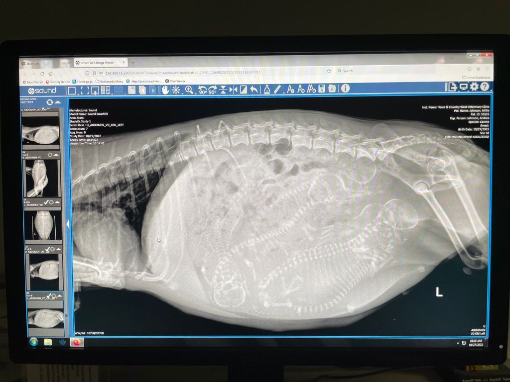 Side view x-ray of Millie’s puppies